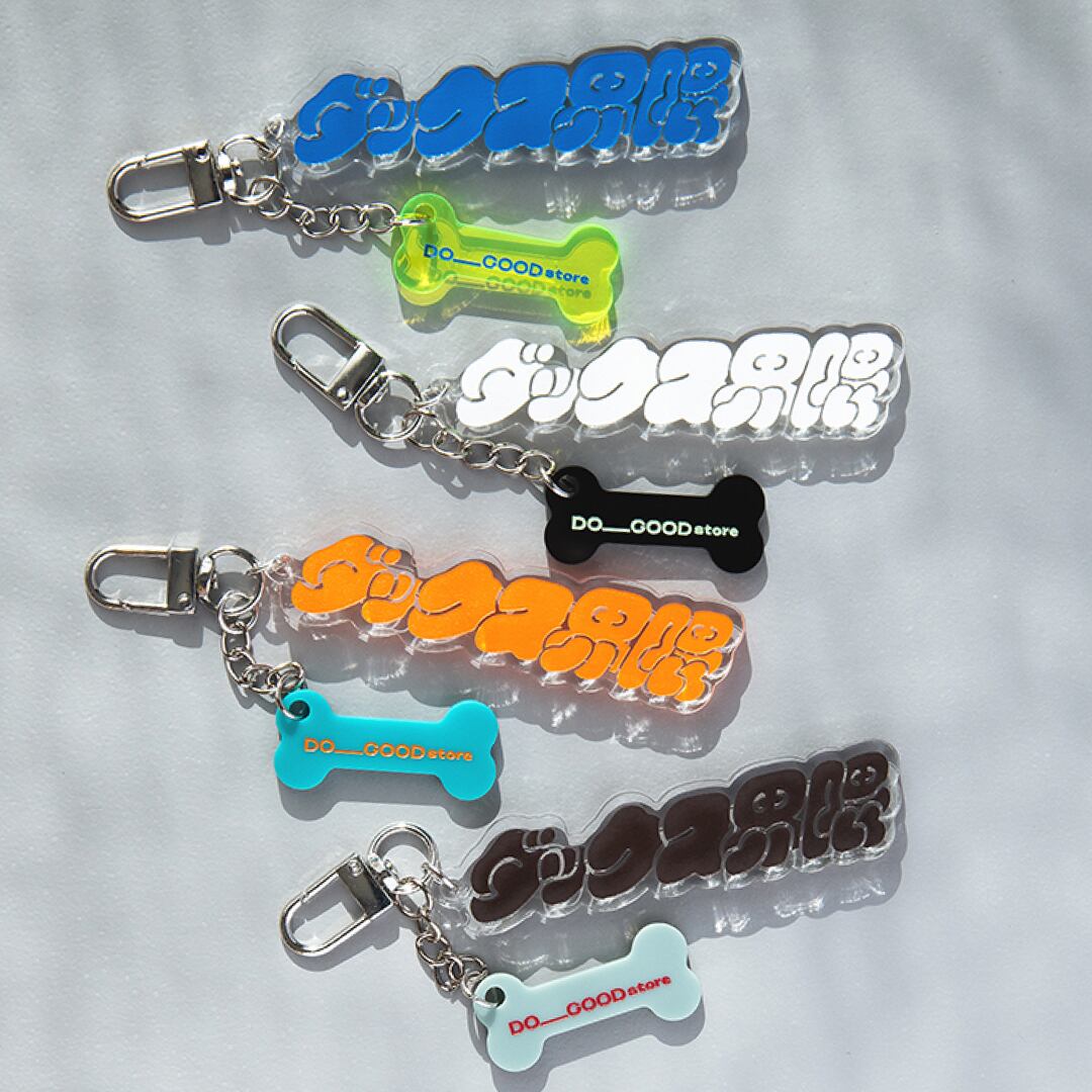 "ダックス界隈"のタイポグラフィをモチーフにした、アクリルキーチェーン。